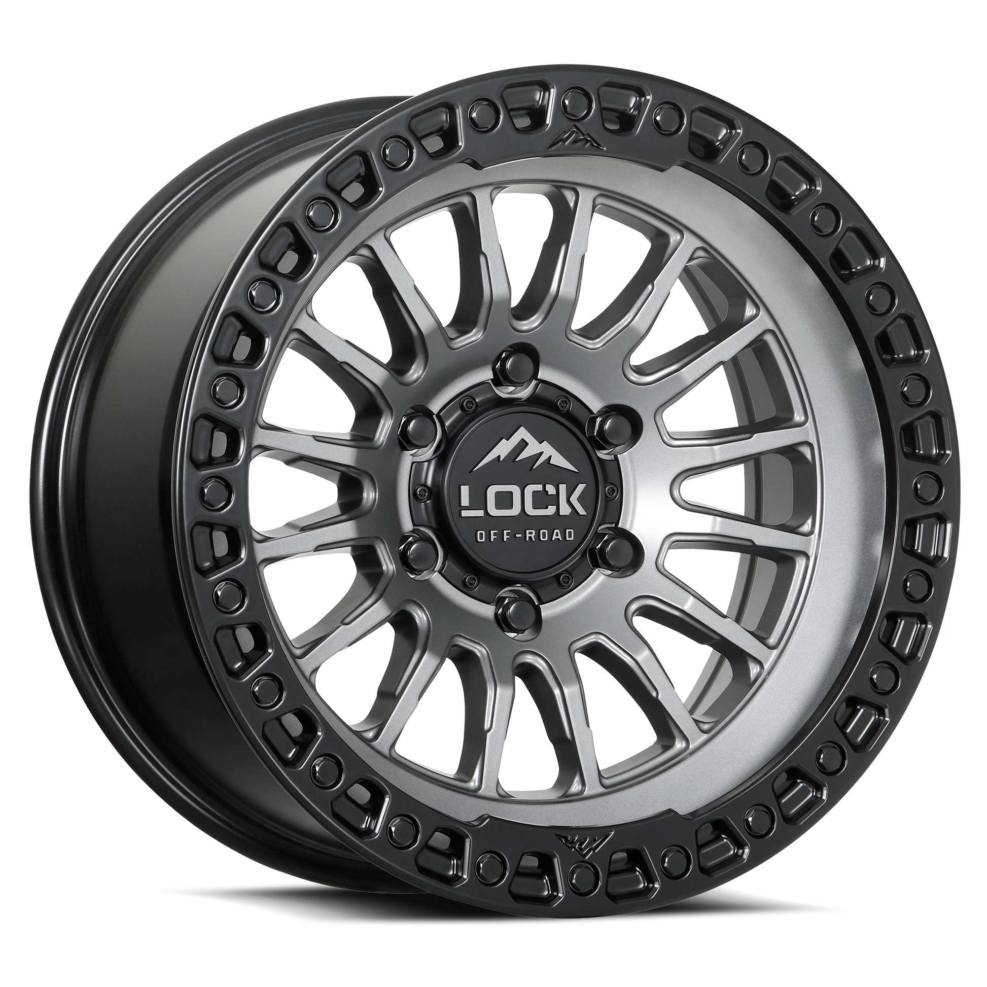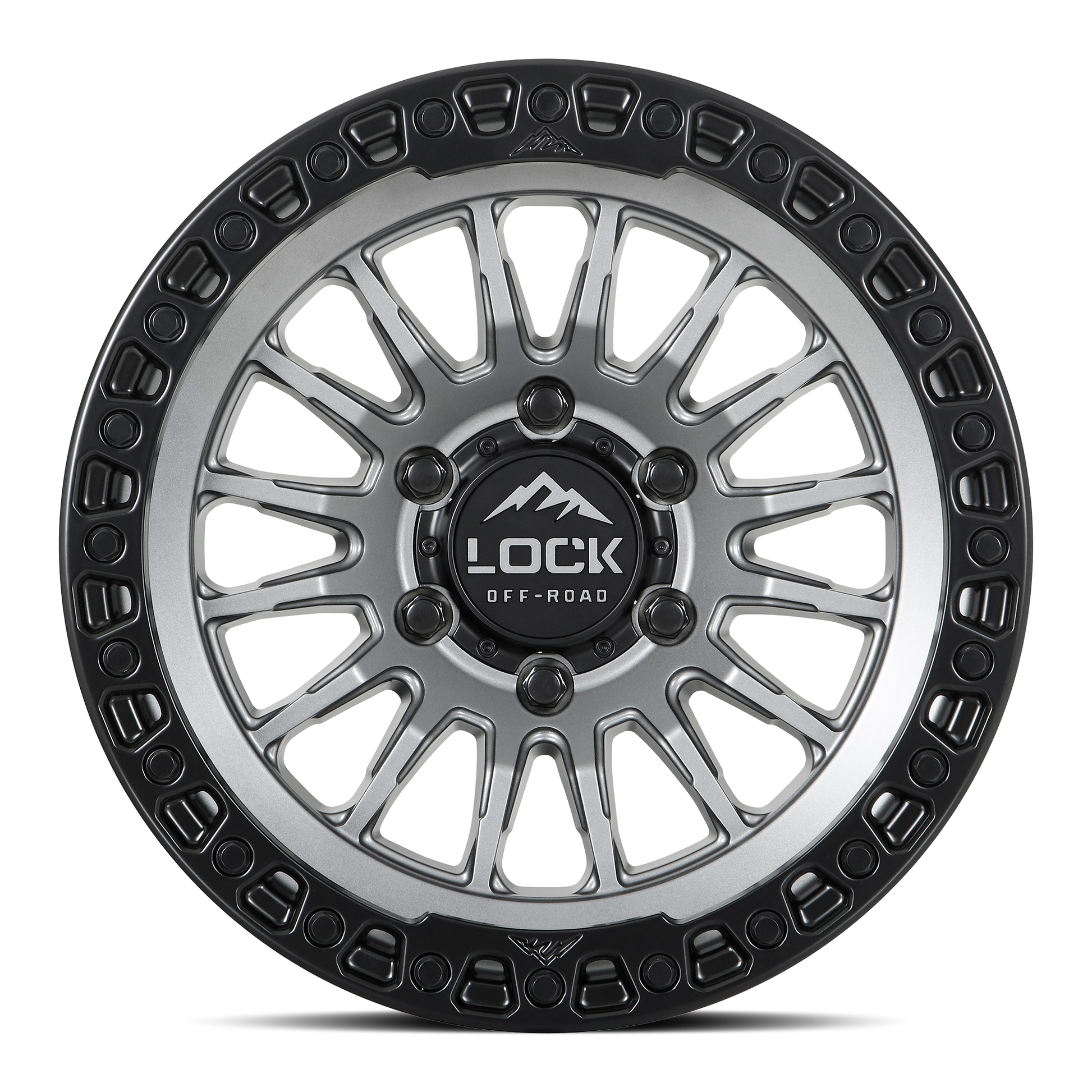 The Lock Offroad GRIT wheel in Matte Grey W Matte Black Ring finish. Premium off-road wheel designed for durability and performance.
